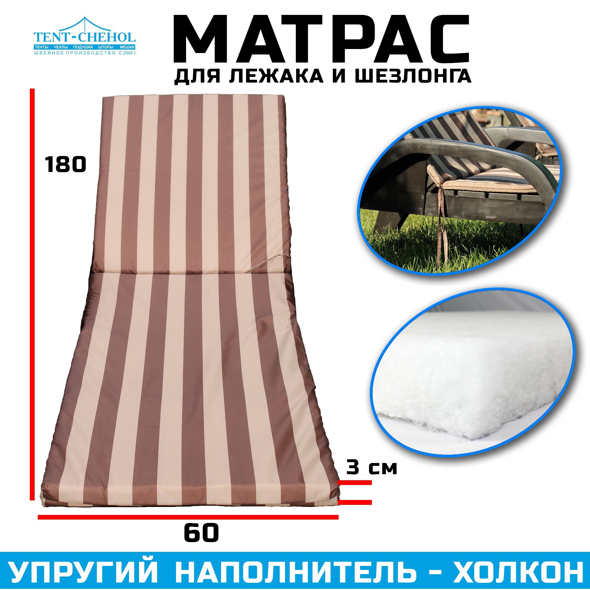 Купить Матрас для шезлонга и лежака 180х60х3 (бежево-коричневый) цена 1500 руб. в Москве и СПб с доставкой по России